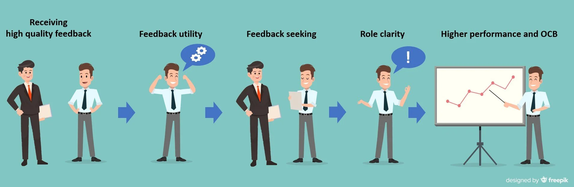 Again, the researchers investigated why this happens. Role clarity is the mechanism activated by feedback seeking, which explains the improvement in task performance and organizational citizenship behavior (OCBs). The more frequent the feedback sought by employees, the greater clarity they gain in terms of role demands, assigned goals and expected standards. This evidently has a direct impact on the likelihood of successfully reaching their goals and delivering high performance. Furthermore, because an employee feels important and considered by the manager, who is available to provide feedback to them when needed, s/he would feel part of the organization and give back to it in the form of more extra-role supportive behaviors (OCBs).